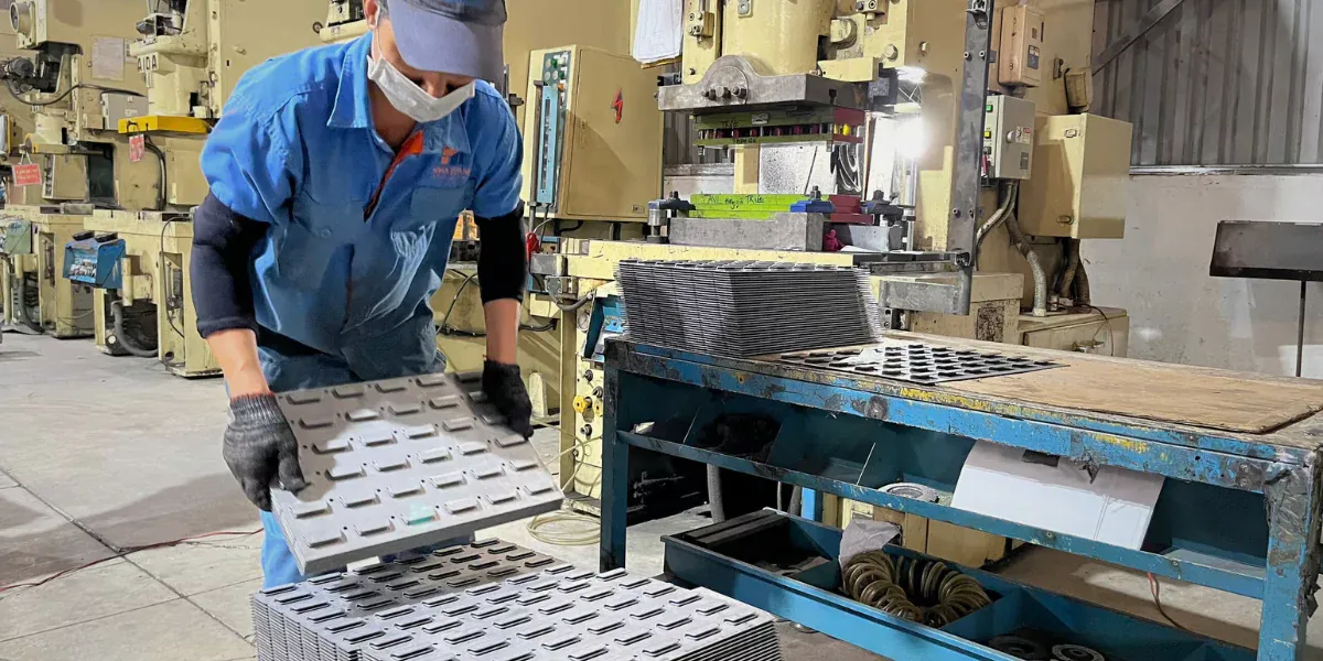 Gia công dập tấm kim loại là công đoạn sử dụng lực lớn tác động từ trên xuống để nhấn, dập, ép, cắt các sản phẩm cơ khí theo yêu cầu.