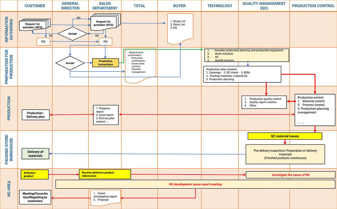 Chúng tôi tiếp tục theo đuổi con đường của một công ty sản xuất < monodukuri kaisha >. Mục tiêu trở thành một công ty từ R&D – thiết kế – tạo ra sản phẩm chất lượng và an toàn cho người sử dụng. Toàn thể nhân viên Cơ Khí Nhật Nam luôn đoàn kết, nỗ lực để cống hiến nhiều hơn cho xã hội.