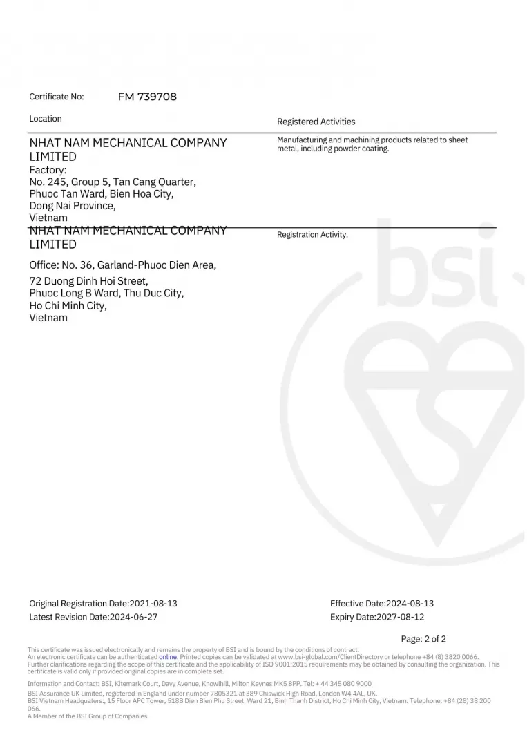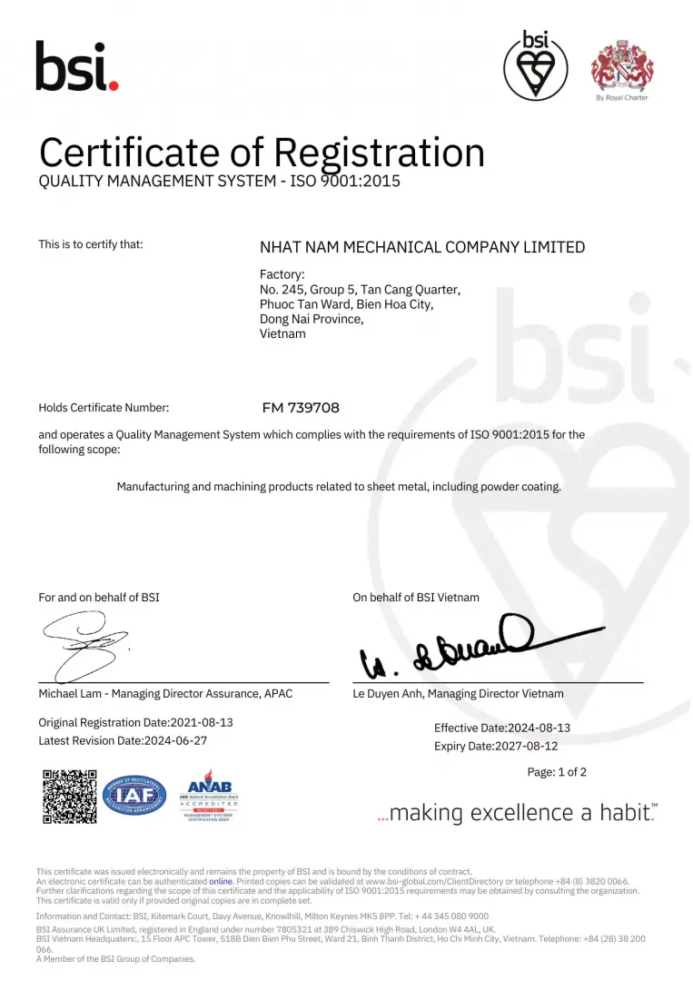 - Công ty gia công kim loại tấm xuất khẩu hàng đầu tại Việt Nam.