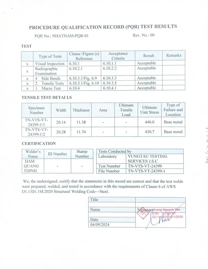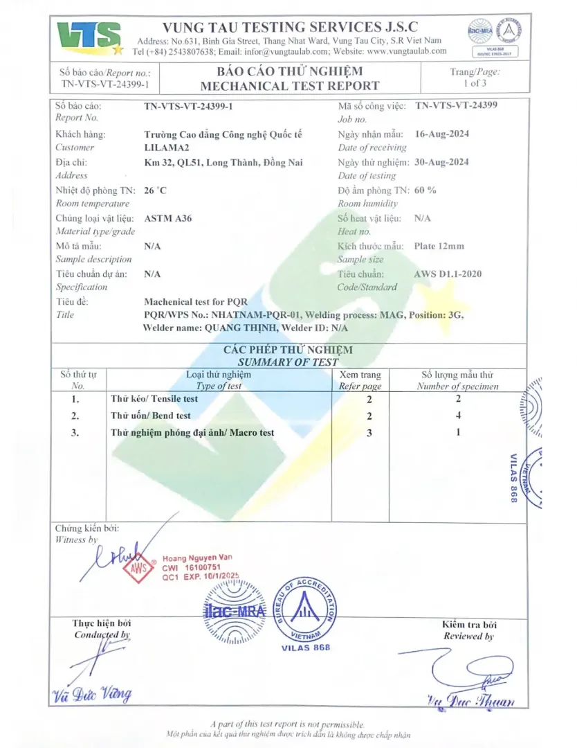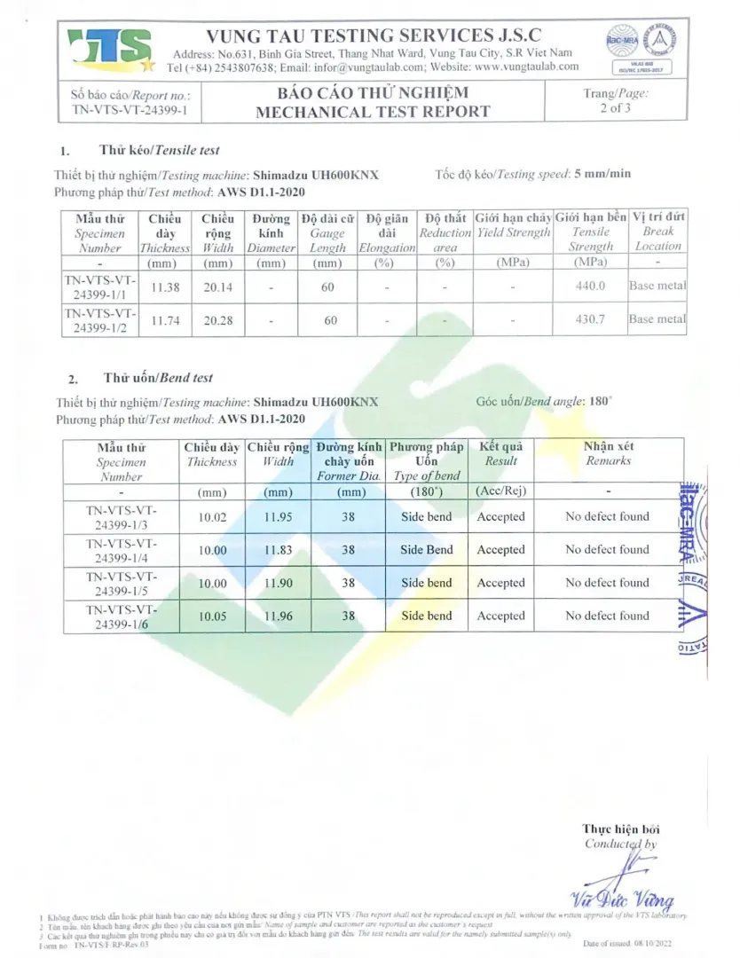 - 2020: Đầu tư máy hàn robot, lấy chứng chỉ quản lý chất lượng ISO 9001:2015
